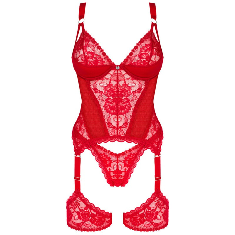 La sensualidad y el erotismo alcanzan otro nivel en esta elegante propuesta de Obsessive. El corset de la colección Beluvya es una original prenda en tela de encaje elástica que se adapta perfectamente a tu cuerpo para resaltar sus formas más sugerentes.