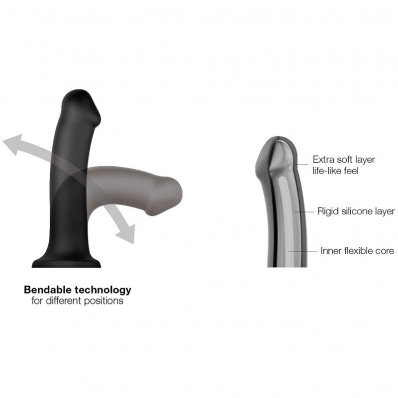La intensidad de este dildo dual no solo se hace notar por su gran volumen. La combinación de capas suaves y mullidas con el corazón semirrígido hacen que se sienta de un modo muy especial durante la penetración.
