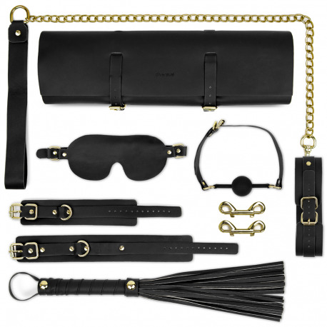 Set de BDSM con 6 accesorios fabricados en cuero vegano y metal. Incluye estuche para almacenamiento.