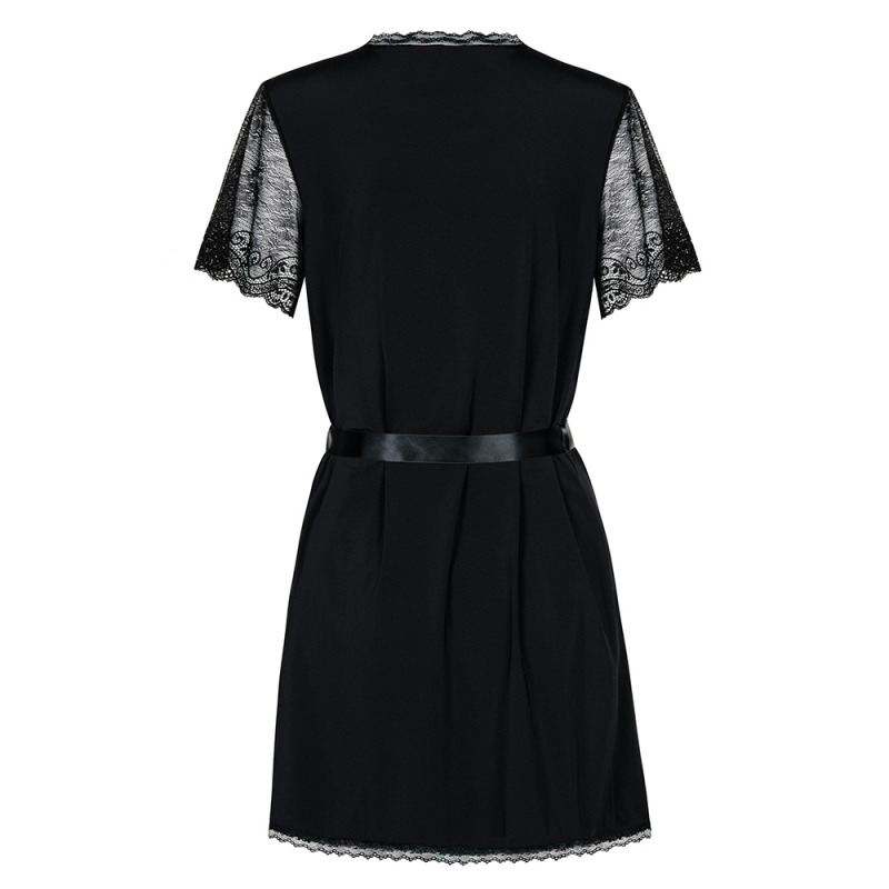La elección del vestuario adecuado puede aportar mucho a tus veladas más especiales. Esta bata corta y con encajes es un modo sencillo de añadir un plus de sensualidad y erotismo a tus encuentros en parejas. Elegancia y glamour en una prenda tradicional que siempre está de moda. Producto ofrecido por diversual.com.