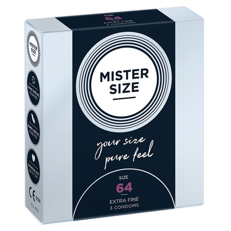 ¿Te preocupa la seguridad durante tus relaciones sexuales? Con los preservativos Mister Size de 64 mm puedes estar tranquilo. Precisamente porque se ajustan a las erecciones más voluminosas resultan mucho más seguros.