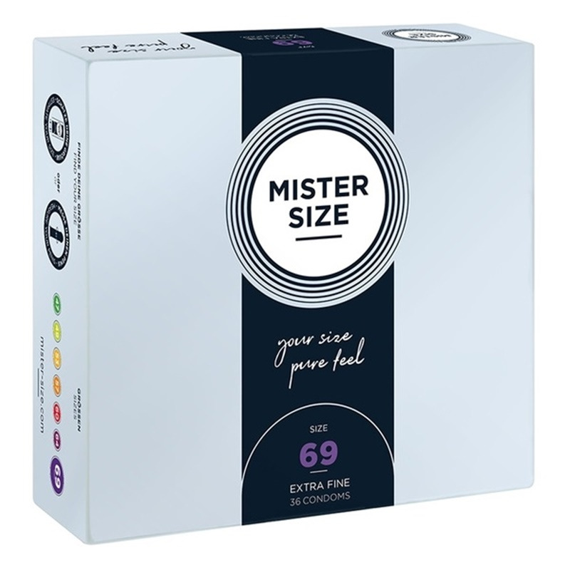 Encontrar un preservativo de 69 mm de anchura nominal puede convertirse en una odisea. Muy pocas marcas trabajan con medidas de condones pensadas para erecciones así de voluminosas. Mister Size te proporciona un tipo de protección hecho a la medida de tus necesidades.