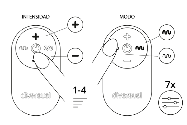 El mando posee 5 botones con los que accionar la vibración, así como cambiar de intensidad y modo de vibración.